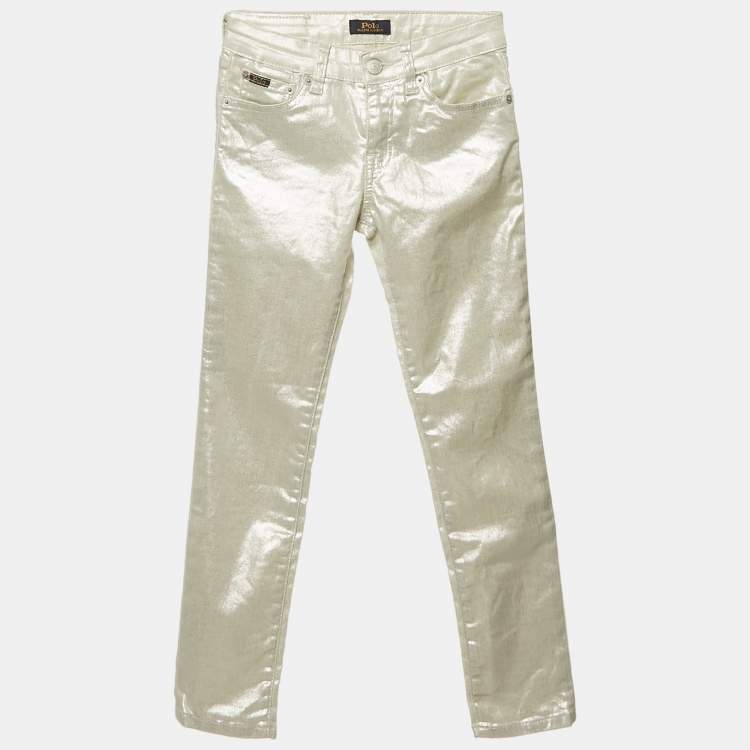 Pre Owned Polo Ralph Lauren Kids Sliver Metallic The Tompkins Skinny Jeans 8-10 Yrs