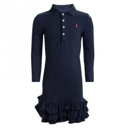 Ralph Lauren Navy Blue Long Sleeve Ruffle Bottom Polo T-Shirt Dress 5 Yrs