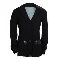 Armani Junior Black Satin Velvet Panel Detail Blazer 10 Yrs