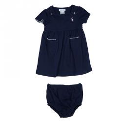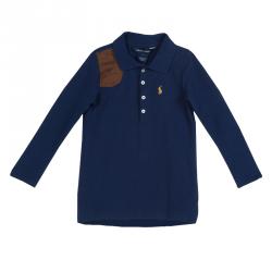 Ralph Lauren Navy Blue Suede Patch Detail Long Sleeve Polo Tunic 3 Yrs