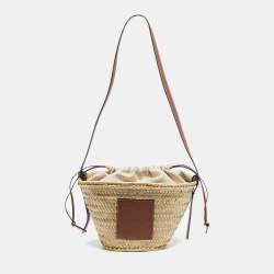 Loewe Brown/Cream Raffia and Leather Basket Tote