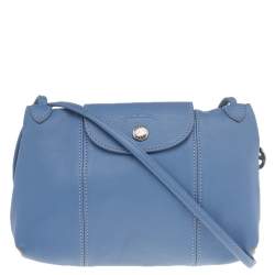 Longchamp Blue/Brown Fabric and Leather Surf and The City Le Pliage Tote