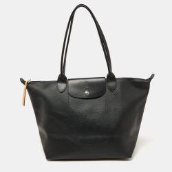 Longchamp Black Leather Medium Le Pliage Tote