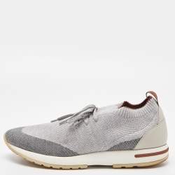 Loro Piana Grey/Cream Knit Fabric and Leather 360 Flexy Walker Slip On Sneakers Size 43