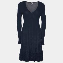 M Missoni Black Textured Knit V-Neck Flared Dress S