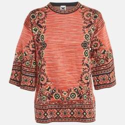 M Missoni Orange Floral Intarsia Stretch Knit Midi Skirt & Top Set M/L