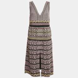 M Missoni Metallic Patterned Lurex Knit V-Neck Sleeveless Midi Dress S