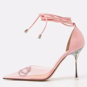 Mach & Mach Pink Leather and PVC Crystal Embellished Bow Ankle Wrap Sandals Size 40.5