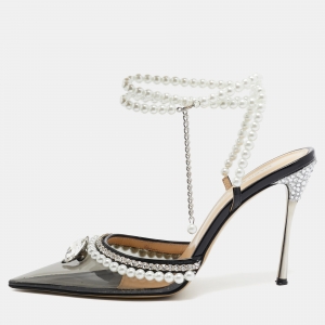 Mach & Mach Transparent PVC Faux Pearl Crystal Embellished Ankle Wrap Pumps Size 37