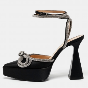 Mach & Mach Black Satin Double Bow Crystal Embellished Platform Pumps Size 40