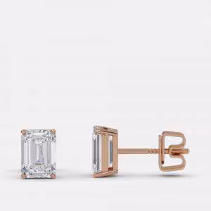 4.00 Ct Emerald 14K Rose Gold Lab Grown Diamond Solitaire 4 Prong Earring