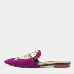 Malone Souliers Metallic Purple Leather And Elastic Maisie Flat Mules Size 36