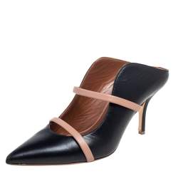 Malone Souliers Black/Beige Leather Maureen Pointed Toe Mules Size 40.5