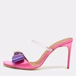 Malone Souliers Pink/Purple Satin Emily Bow Slide Sandals Size 38