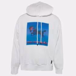 Marcelo Burlon White Printed Cotton Knit Hooded Sweatshirt S