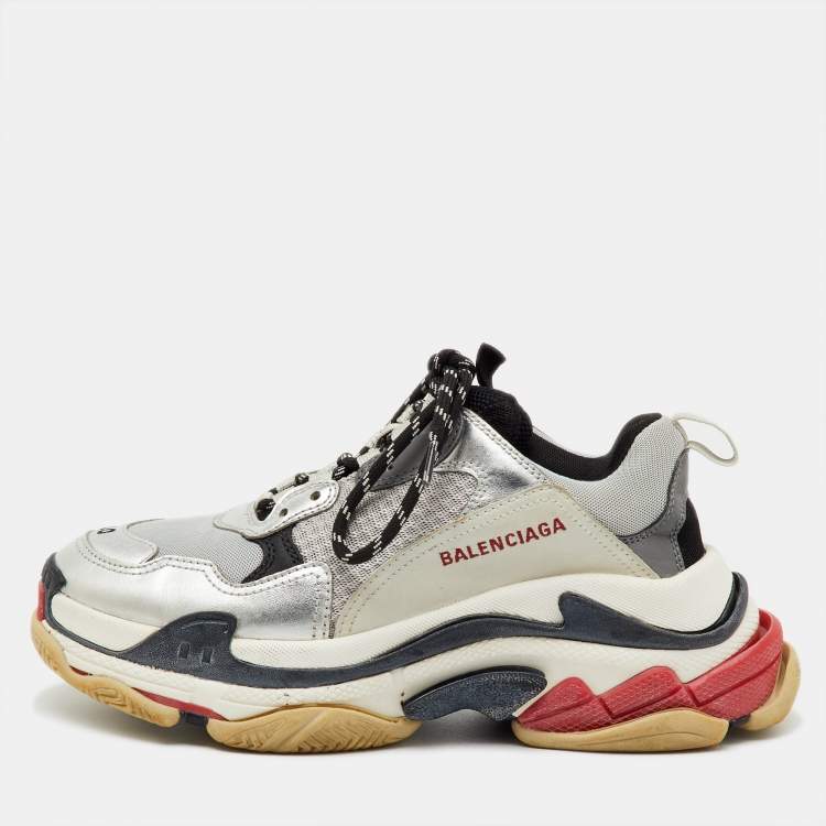Balenciaga Grey/Silver Mesh and Faux Leather Triple S Lace Up Sneakers Size 40