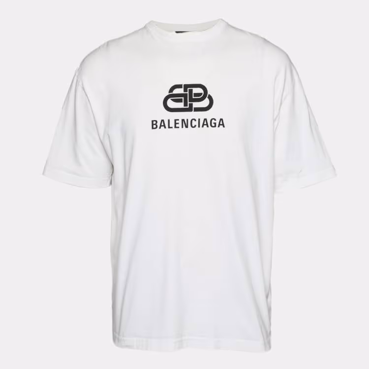 Balenciaga White Logo Print Jersey Crewneck T-Shirt XS