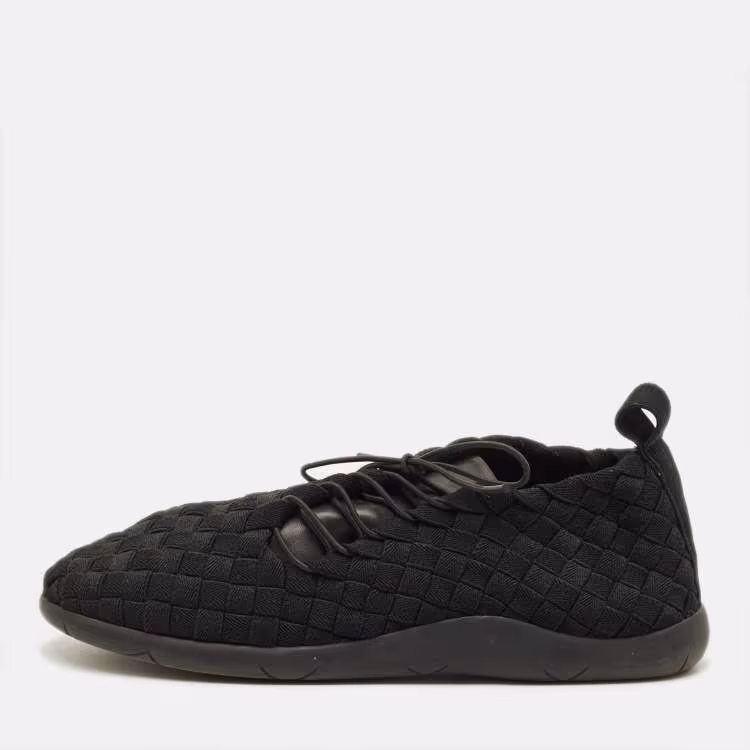 Pre Owned Bottega Veneta Intrecciato Size 43 Black Woven Fabric Lace Up Sneakers