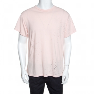 Amiri Pale Pink Distressed Cotton Shotgun T-Shirt M