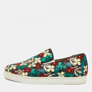 Pre Owned Christian Louboutin Size 42.5 Multicolor Canvas And Patent Leather Floral Applique Slip On Sneakers