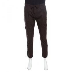 Dolce & Gabbana Brown Cotton Side Stripe Detail Elastcized Waist Pants S
