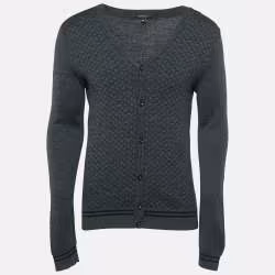 Gucci Charcoal Black Printed Wool Button Front Cardigan M