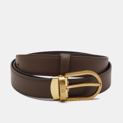 Montblanc Brown Leather Horseshoe Cut to Size Buckle Belt