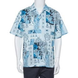 Prada Blue Robot Printed Cotton Bowling Shirt XL