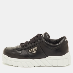 Prada Logo Plaque Size 41.5 Black Leather Lace Up Sneakers
