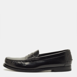 Prada Size 41 Black Brushed Leather Penny Loafers