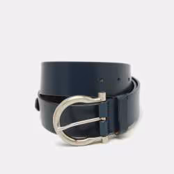 Salvatore Ferragamo Dark Blue Leather Gancio Buckle Belt 85CM