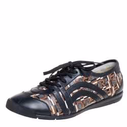 Salvatore Ferragamo Brown/Black Canvas And Leather Low Top Sneakers Size 43.5
