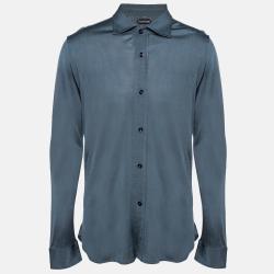 Tom Ford Blue Checked Cotton Button Front Shirt L
