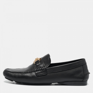 Versace Black Leather And Monogram Fabric Medusa Slip On Loafers Size 44