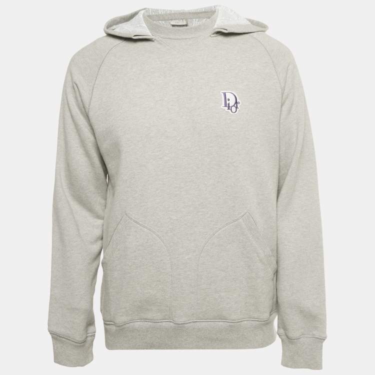 Dior Homme Grey Logo Applique Cotton Hooded Sweatshirt L