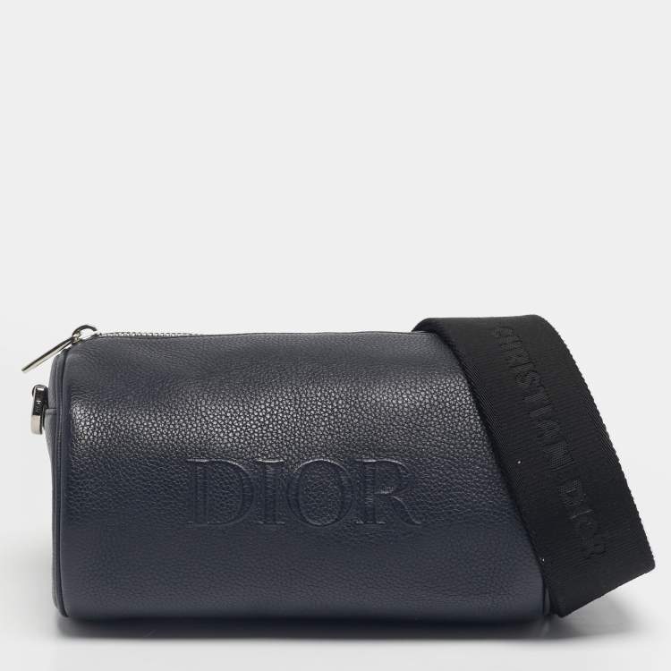 Dior Navy Blue/Black Leather Roller Messenger Bag