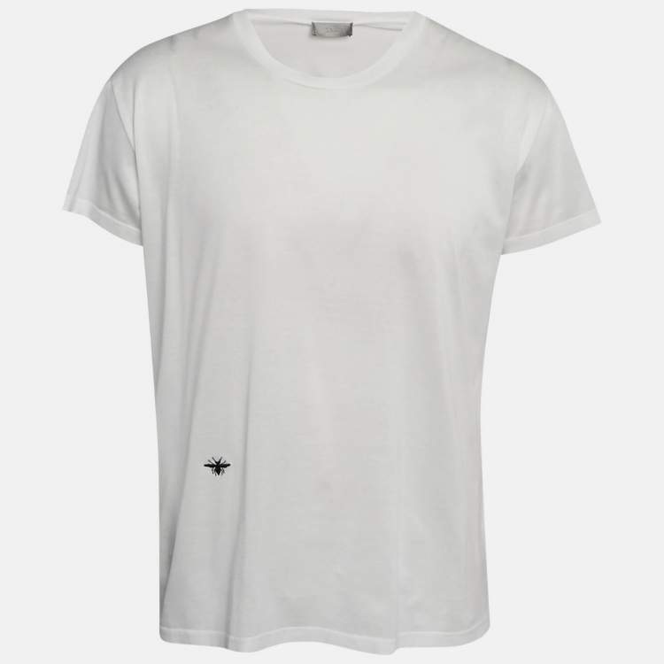 Dior White Embroidered Cotton Round Neck T-Shirt XL