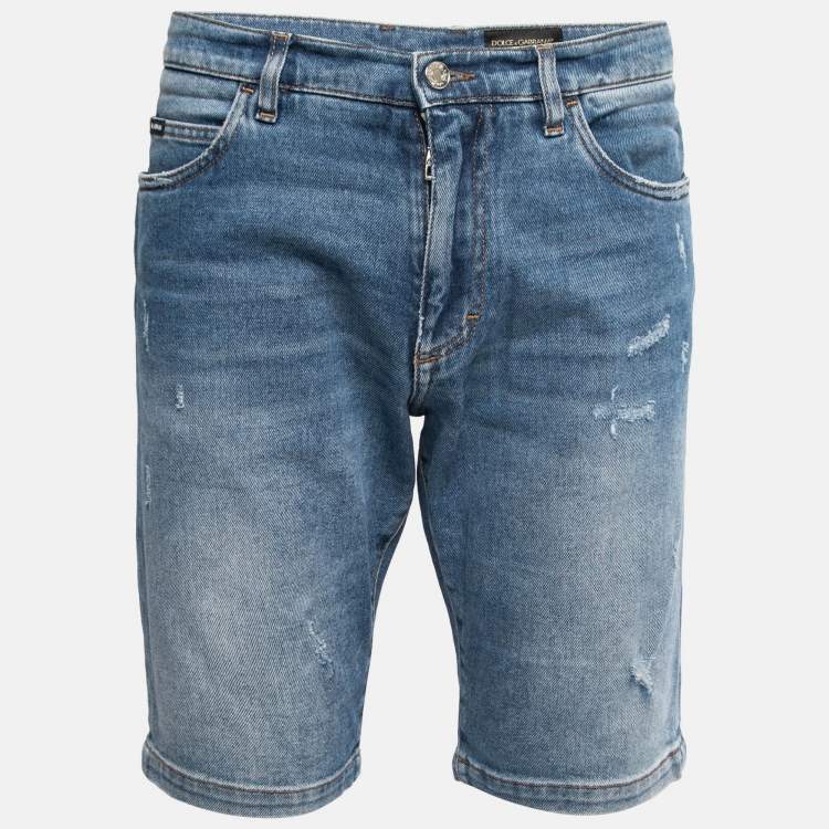 Dolce & Gabbana Blue Washed Distressed Denim Shorts M