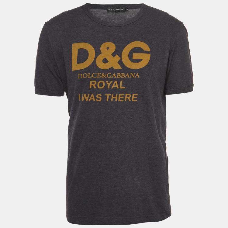 Pre Owned Dolce & Gabbana Grey Logo Print Cotton Half Sleeve T Shirt L