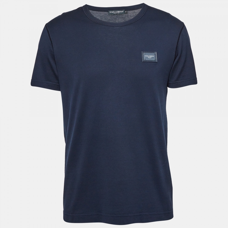 Dolce & Gabbana Navy Blue Logo Applique Cotton T-Shirt L