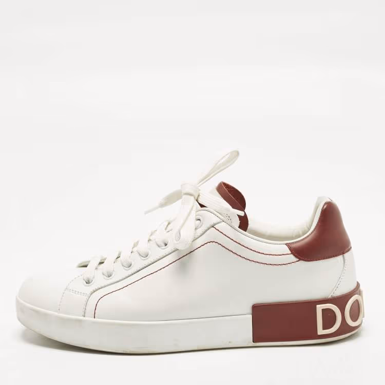 Pre Owned Dolce & Gabbana Portofino Size 40 White Leather Lace Up Sneakers