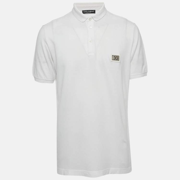 Dolce & Gabbana White Cotton Logo Plaque Detail Polo T-Shirt XXL