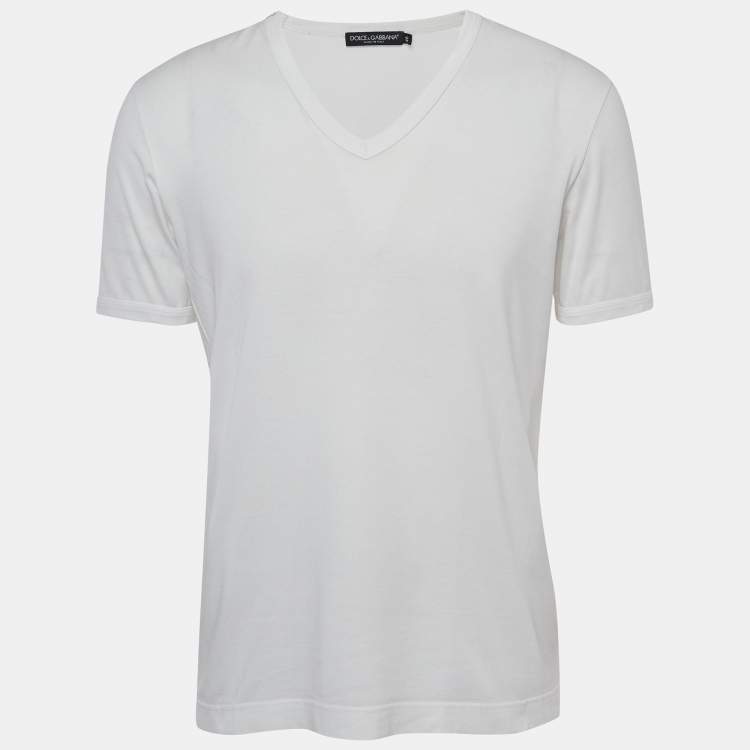 Dolce & Gabbana White Cotton V-Neck T-Shirt M