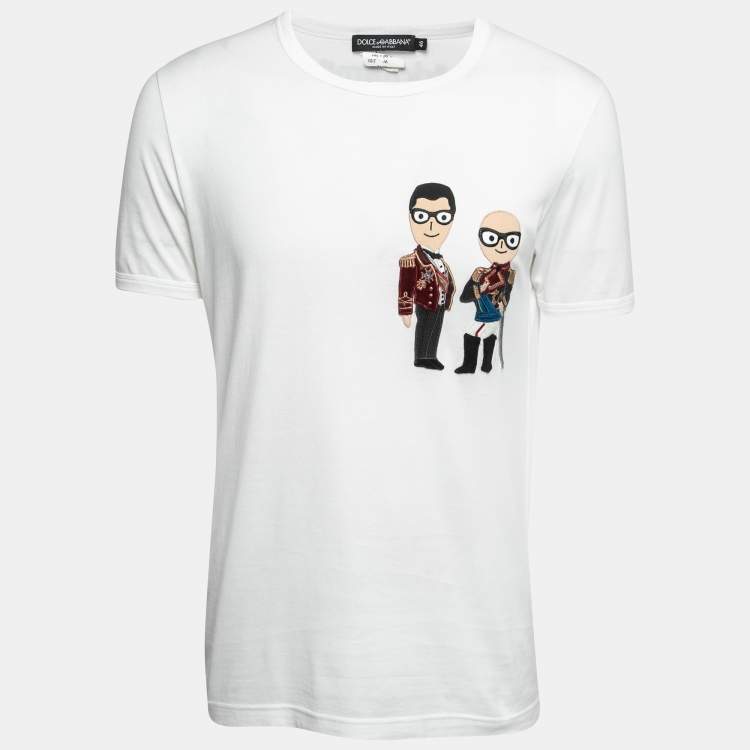 Dolce & Gabbana White Embroidered Cotton Half Sleeve T-Shirt S