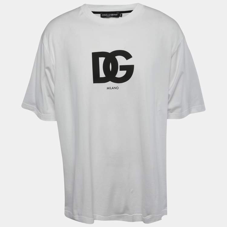 Dolce & Gabbana White Logo Print Crew Neck Half Sleeve T-Shirt XXL