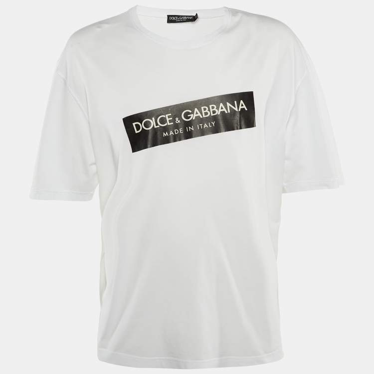 Dolce & Gabbana White Slant Logo Print Cotton Crew Neck T-Shirt XL