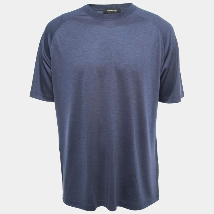 Pre Owned Ermenegildo Zegna Navy Blue Wool High Performance Crew Neck T-Shirt XL