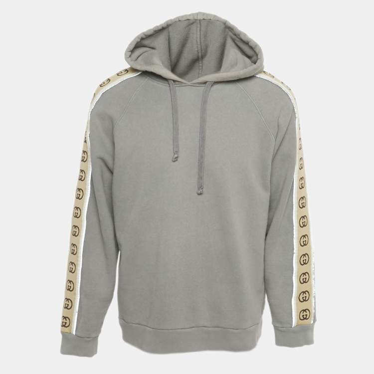 Gucci Grey GG Band Trim Cotton Hoodie L