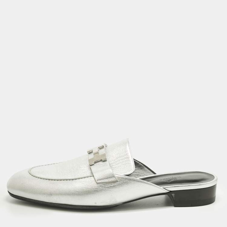 Pre Owned Hermès Silver Leather Trocadero Mules Size 41