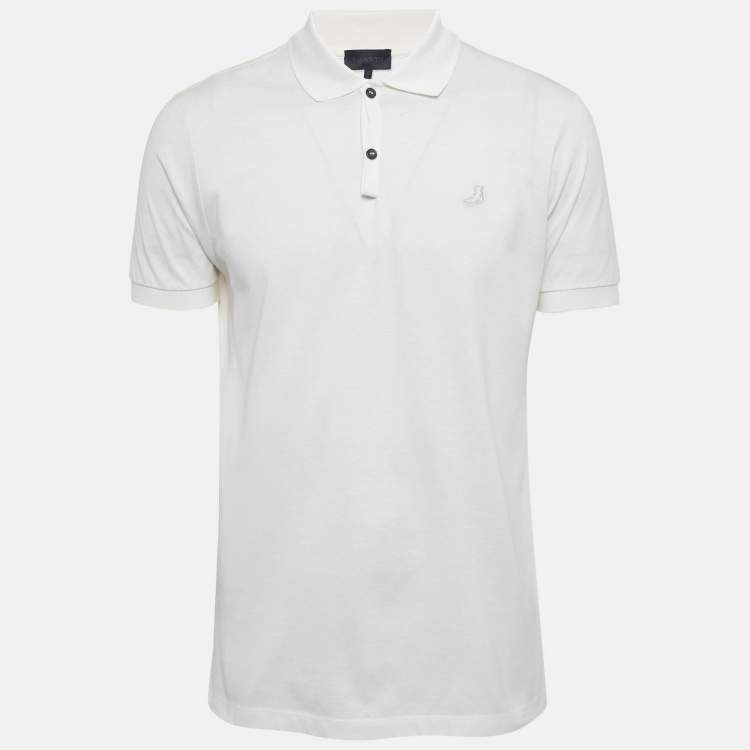 Pre Owned Lanvin White Cotton Embroidered Polo T-Shirt L